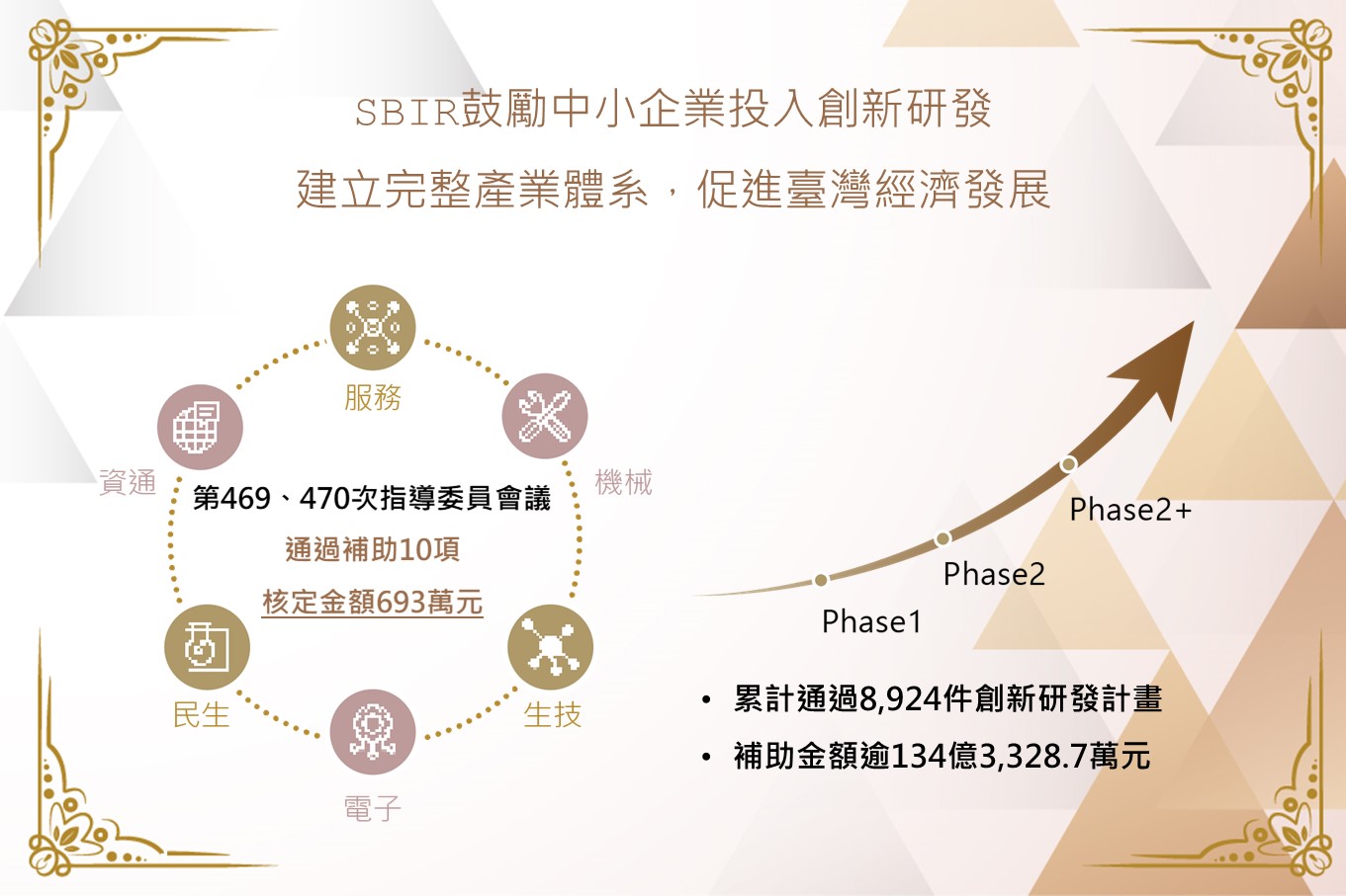 SMEA stated that the projects passed in the No. 469 470 SBIR Steering Committee has increased the subsidized companies' investments in R&D expenditures by NTD 13.67 million. They are expected to motivate SMEs in investing more R&D human resources. The SBIR is promoted to incentivize and assist R&D activities for SMEs to achieve sustainable development and growth. It also seeks to establish a comprehensive industry system based on the R&D outcomes and promote economic development in Taiwan.