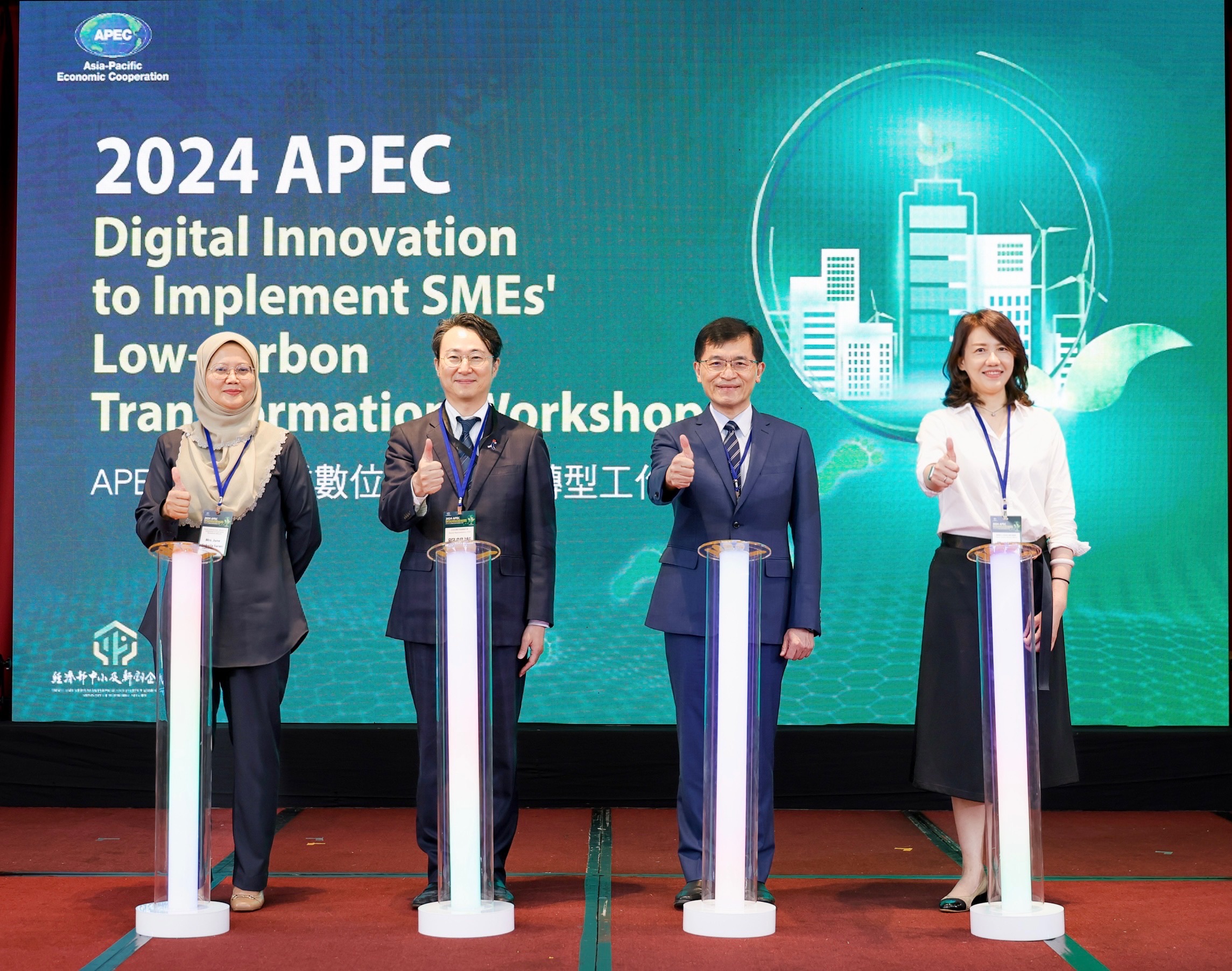 The Small and Medium Enterprise and Startup Administration (SMESA) of the Ministry of Economic Affairs (MOEA) hosted the APEC Digital Innovation to Implement SMEs Low-Carbon Transformation Workshop on June 12-13. Experts from the public sector, industry, and academia from Japan, Indonesia, Malaysia, Peru, the Philippines, Viet Nam, and Thailand, as well as leading MNEs, Merck Life Science and Siemens, were invited to participate in the workshop. The event aimed to not only raise awareness of green transformation among APEC economies but also lead participating SMEs from member economies in practical exercises, utilizing innovative low-carbon solutions to assist SMEs with low-carbon transitions.