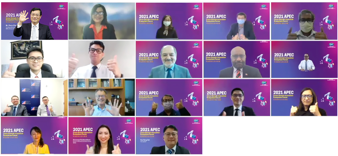 To promote the development of cross-domain innovation ecosystems in combination with digital platforms so as to enhance the competitiveness of SMEs, Chinese Taipei co-proposed the "APEC Cross-Domain Innovation Ecosystem Initiative: Facilitating the Inclusive Growth of SMEs through Digital Platforms across the APEC Region" with the Philippines. The Small and Medium Enterprise Administration, Ministry of Economic Affairs co-hosted the "APEC Cross-Domain Innovation Ecosystem Forum" online on 25 August with Bureau of Economic Development of Kaohsiung City Government and Department of Trade and Industry of the Philippines, in which delegations of APEC economies, best practices of cross-domain innovation ecosystem, and start-ups were invited to participate. The forum invited best practices from Chinese Taipei and APEC economies to demonstrate their innovative products and services in a virtual exhibition center, which was also the highlight of the event.