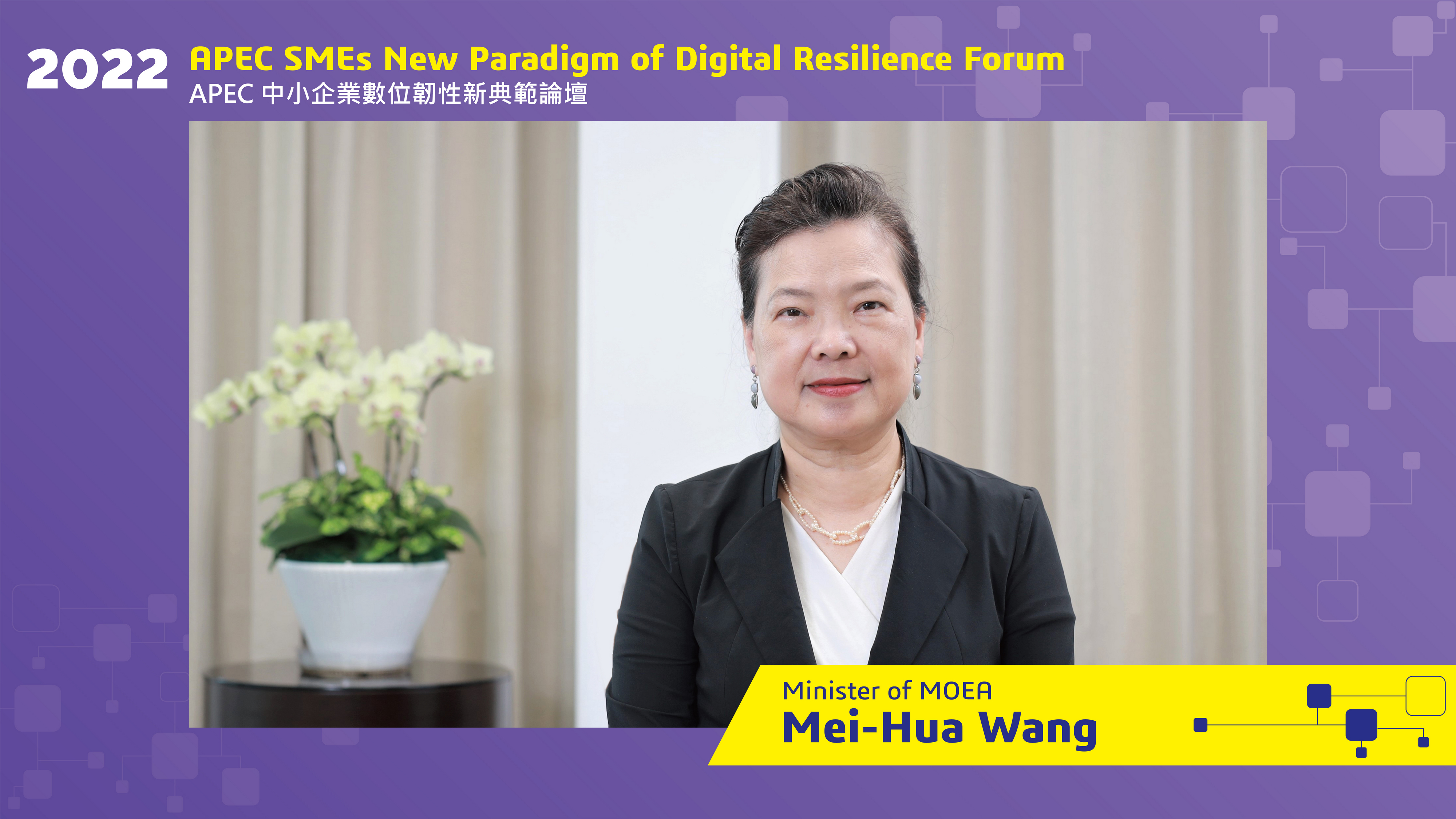 The forum was opened by Ms. Mei-Hua Wang, Minister of the Ministry of Economic Affairs, with comments on “APEC SMEs New Paradigm — Revitalize Sustainable Business through Digital Resilience” initiative. Ms. Wang stated that the initiative echoes the Putrajaya Vision 2040 on digital capacity building and inclusive growth, and that the 2022 APEC theme “Open, Connect, Balance,” aims to facilitate SMEs deployment of digital solutions that improve internal operation efficiency and deepen supply chain collaboration and customer relations management. APEC member economies will work hand in hand to promote SMEs’ business continuity and inclusive growth, and narrow the digital gap of SMEs through the initiative and this forum.