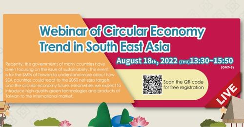 Recently, the governments of many countries have been focusing on the issue of sustainability. This event is for the SMEs of Taiwan to understand more about how SEA countries could react to the 2050 net-zero targets and the circular economy future. Meanwhile, we expect to introduce high-quality green technologies and products of Taiwan to the international market.