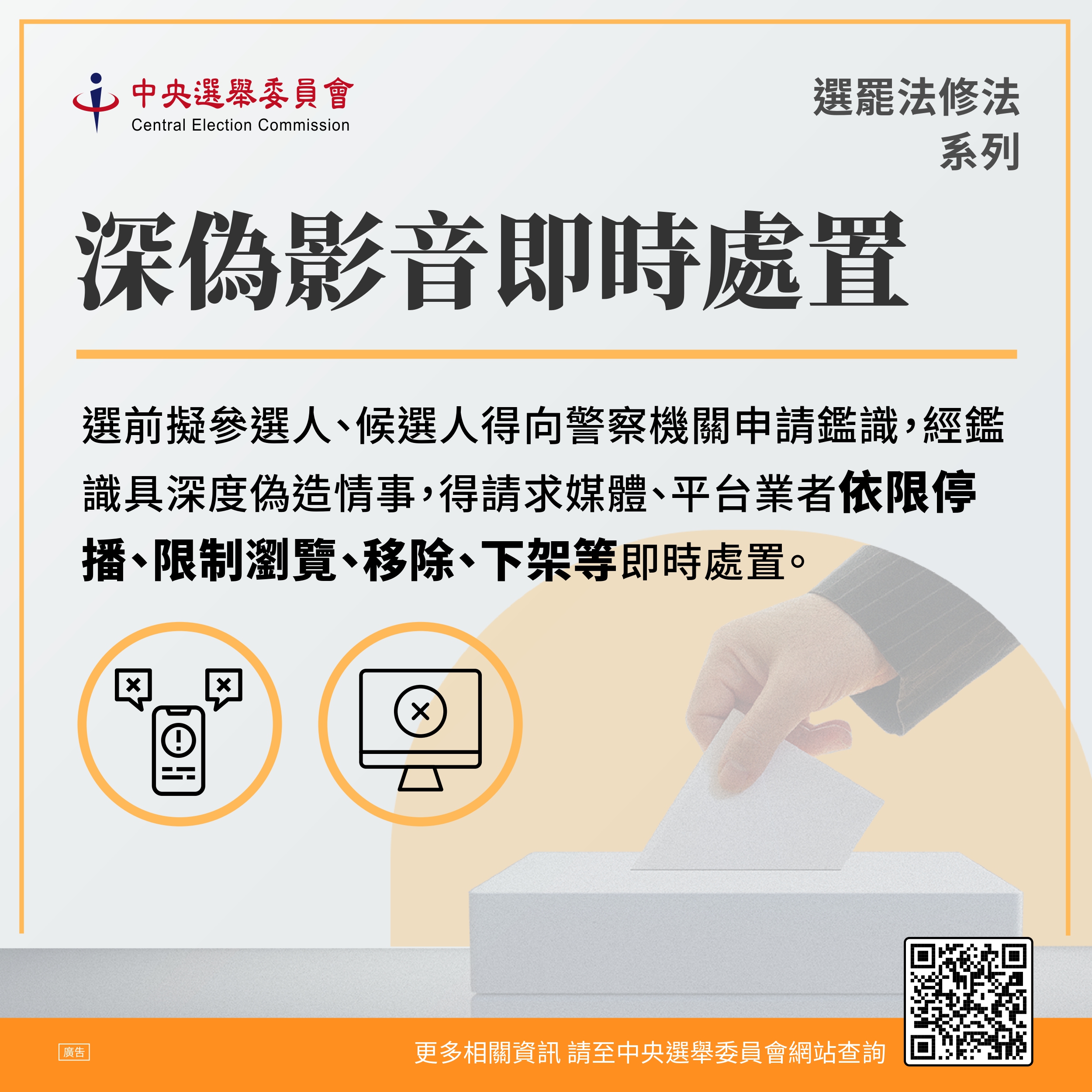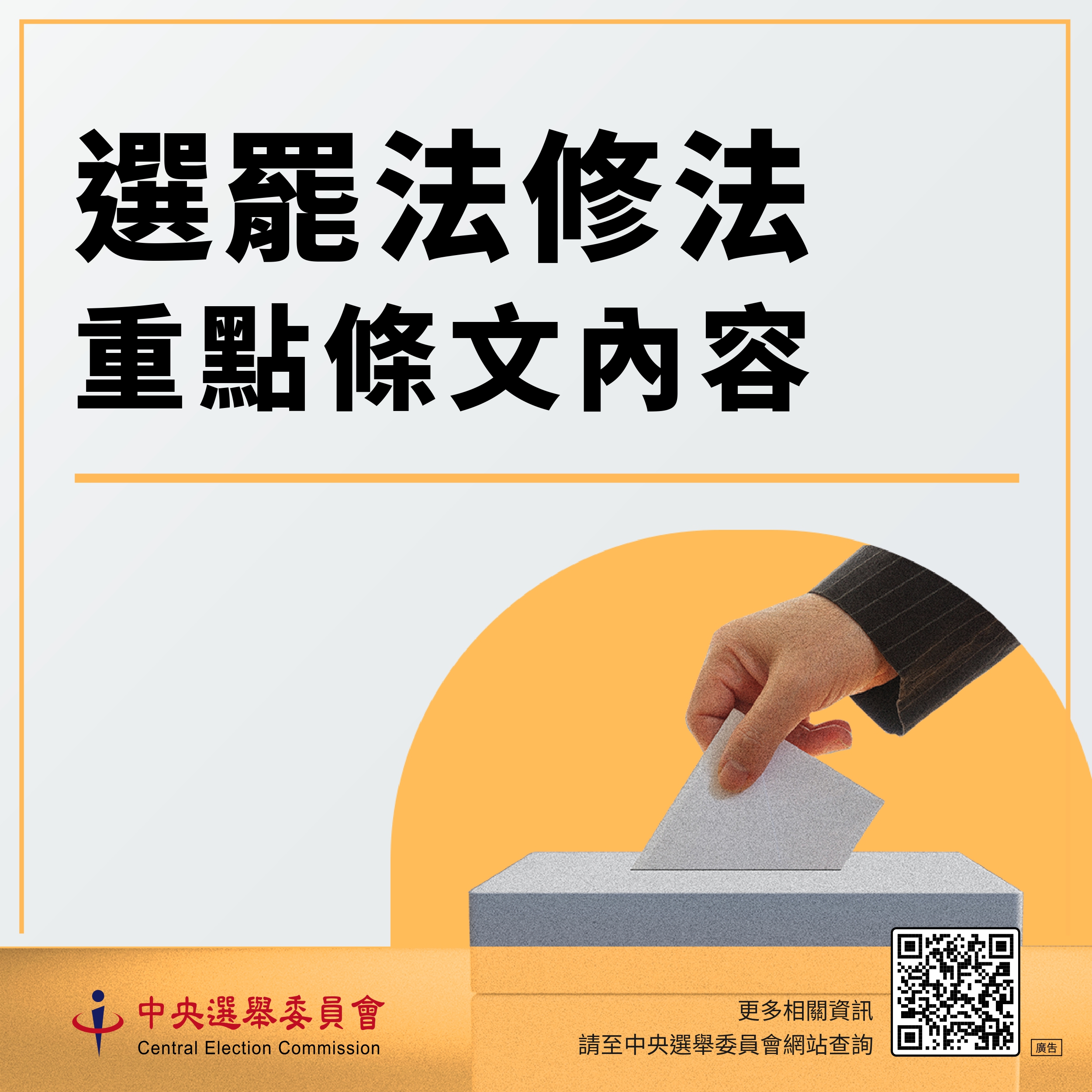 詳情請見:112年選罷法修法專區(https://web.cec.gov.tw /amendment112)