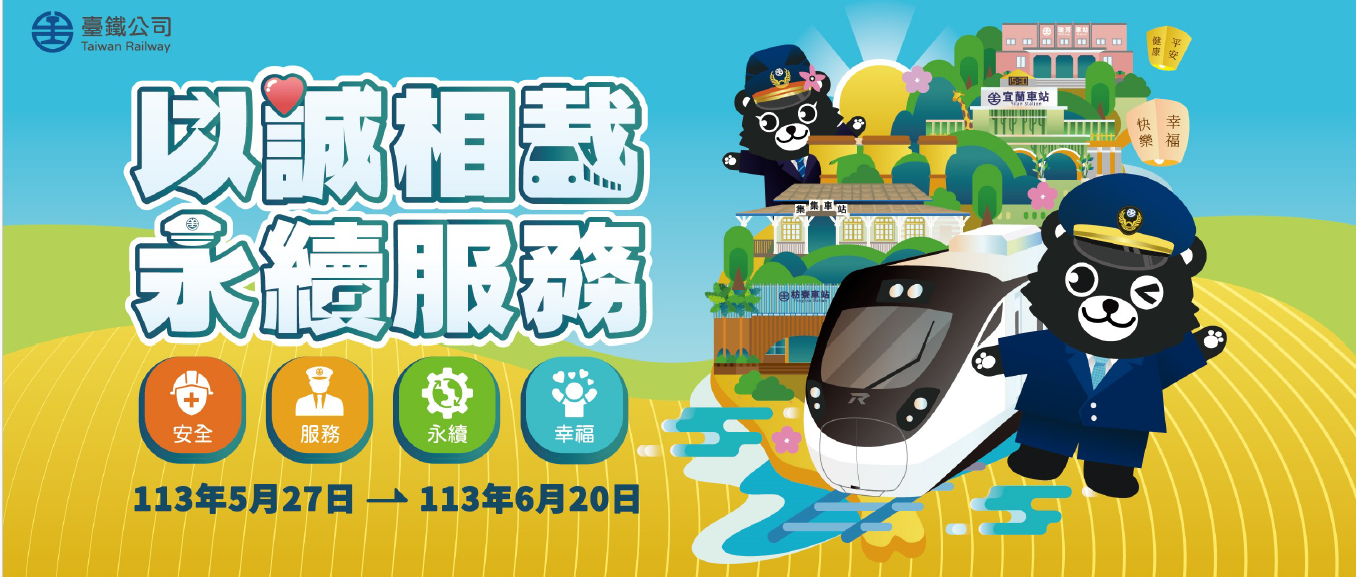 為傳達重視企業誠信、永續發展經營理念,回應 ESG全球永續發展之國際趨勢,國營臺灣鐵路股份有限公司結合113年鐵路節(臺鐵137週年) 及第9屆鐵路便當節,推出「以誠相載 永續服務」網路互動有獎徵答宣傳活動,期藉由活潑多元宣傳方式,擴大宣導誠信經營及永續治理,提升公司廉能治理效能。