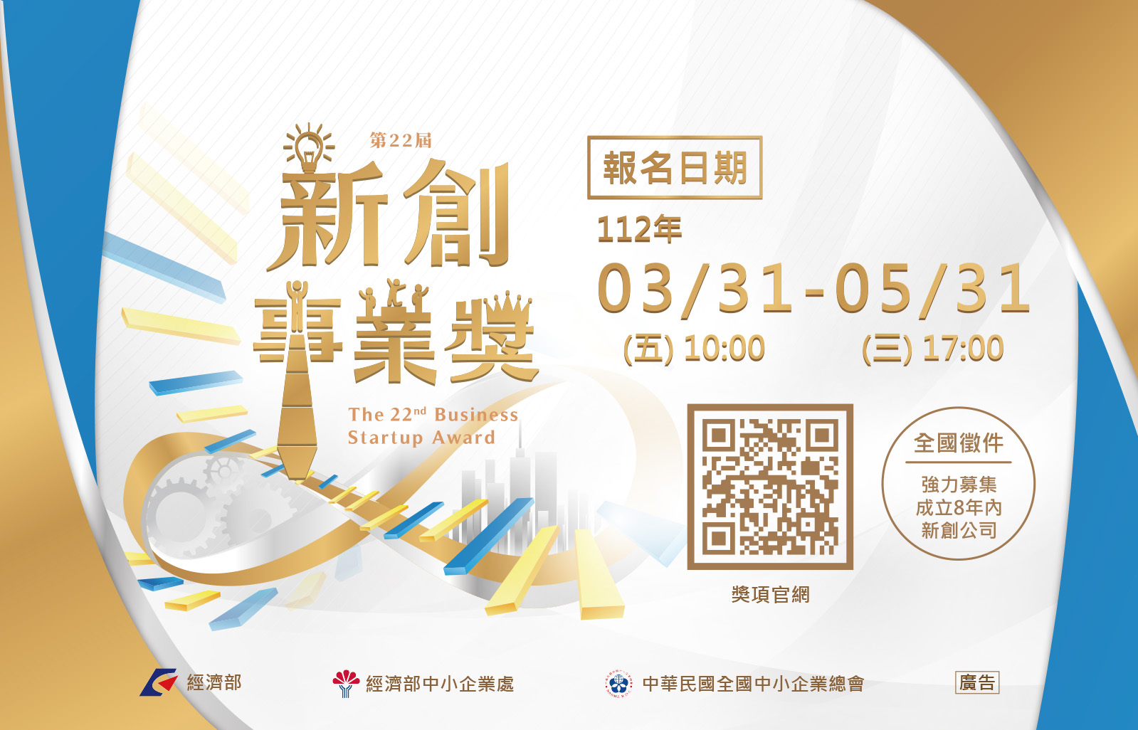 為營造優質創業環境,型塑臺灣成為創業型社會,經濟部中小企業處第22屆「新創事業獎」選拔活動,鼓勵各業界創新新創企業,發展具備優質營運模式之新創事業,樹立成功典範,提振創業家精神,帶動國內創新創業之風氣,為經濟注入活水。