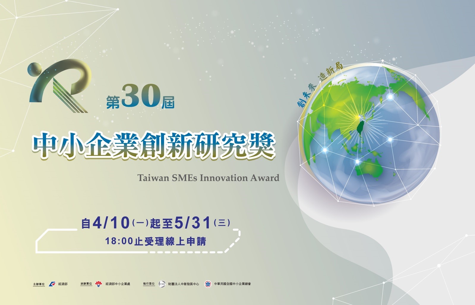 第30屆中小企業創新研究獎即將於本(112)年4月10日起至5月31日受理申請,凡符合行政院核定「中小企業認定標準」且營運中之中小企業,並已於111年底完成自行研發之創新性產品、技術、製程、流程、服務(包含技術服務、知識服務、商業服務)等,且已商業化運用者皆可提出申請,審查作業分為資格審、初審(含實地訪審)與決審,得獎名單預計於112年11月底前公布。
