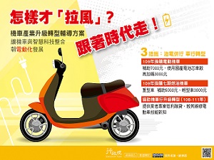 行政院為加強宣導政府推動「協助機車產業升級轉型政策」,特製作電子單張文宣。