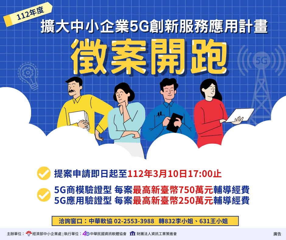四、提案截止日期:公告日起至112年3月10日(五)下午5時截止收件。提案文件電子檔上傳至 https://5g.cisa.tw/apply (112年2月20日(一)中午12時啟用)