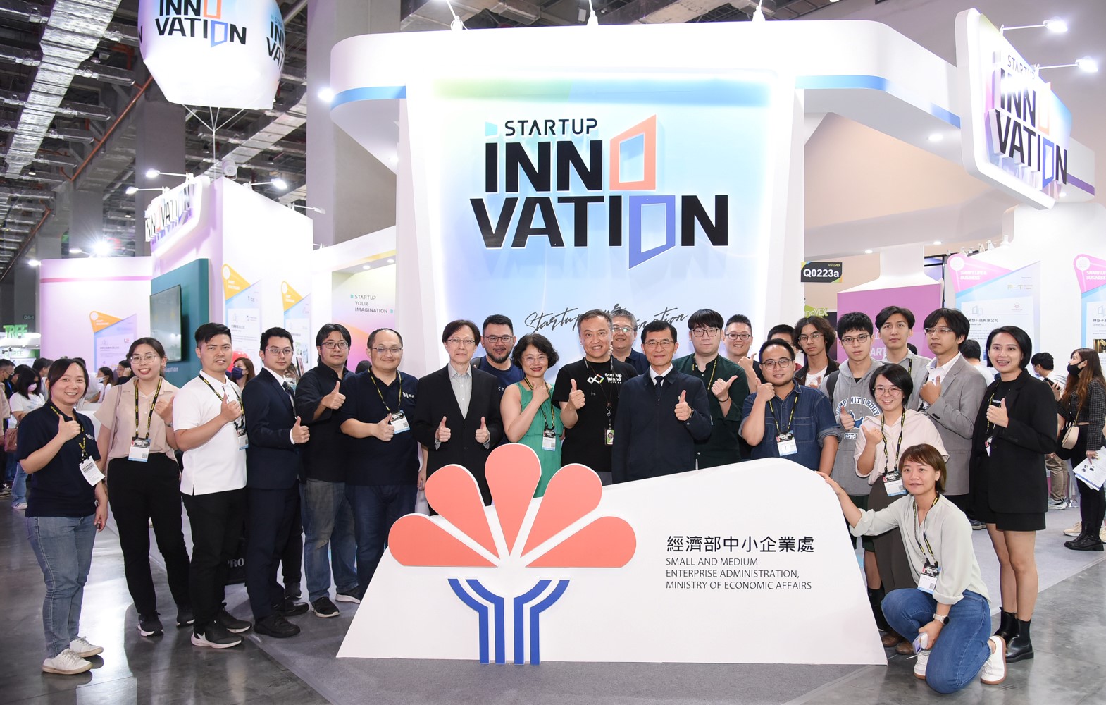 本次中企處於展會中設立最大主題館,由林口新創園、亞灣新創園、TACC+、IAPS及新竹生醫產業及育成中心,共同展示34家新創團隊在綠色科技、智慧醫療、智慧生活、智慧製造及未來科技等五大領域成果。參展新創同步展現優秀的國際實力,如與NVIDIA共同培育「奕瑞科技」及「偲倢科技」,皆應用AI協助製造業進行瑕疵檢測,加速工廠智慧化;醫療新創「宇康生科」,以AiSpeak結合大數據與電腦學習技術,協助構音障礙患者即時辨識並轉換成能理解的清晰語音,於2023 select USA 獲得區域競賽第3名;另「奇翼醫電」以僅15公克的「即時心率監測傳感器」可即時收集生理訊號進而分析,獲得德國iF設計獎肯定,並入圍2023 select USA MedTech領域 top10。而「鉅田潔淨」以農業剩餘資材轉化為符合淨零需求的材料並製成家庭可堆肥餐具與包材外銷全球,榮獲美國IDA、MUSE設計大獎,並獲得法國2023 VIVA Tech展會青睞,特別邀請該公司至展會主舞台分享其產品。