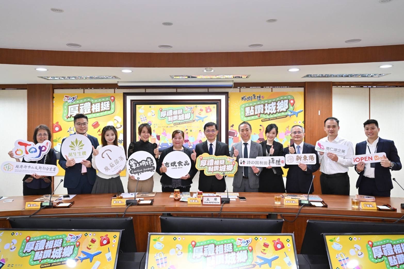 「OTOP城鄉厚禮」作為民眾及企業年節送禮最佳選擇,今日(11/21)特別邀請深耕地方產業多年的城鄉特色產業代表:掌上明珠有限公司、志斌食品股份有限公司、萬生生機股份有限公司與蕈優生物科技股份有限公司(魔菇部落),分享在地品牌價值及故事。並匯聚支持臺灣在地企業的通路業者如新東陽集團、南仁湖集團、統一集團及日商詩國秋田株式會社等,共同力挺臺灣「OTOP城鄉厚禮」品牌,點讚城鄉產業。