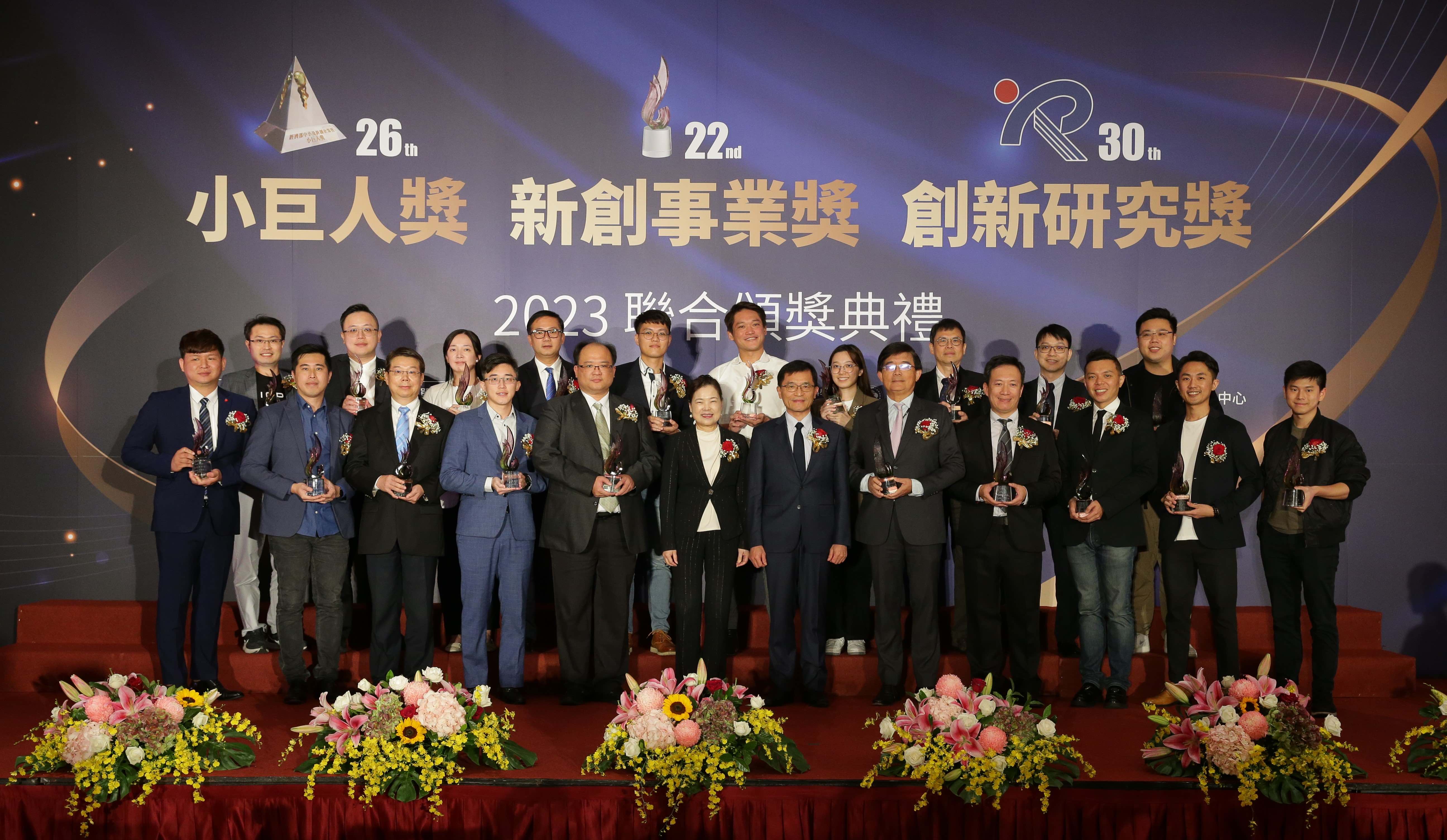 經濟部主辦的第26屆小巨人獎、第22屆新創事業獎及第30屆中小企業創新研究獎聯合頒獎典禮,於11月22日在臺大醫院國際會議中心201室舉行。今(112)年度有12家出口績優企業獲選小巨人獎、20家新創企業獲得新創事業獎及22件創新標的獲創新研究獎, 54家優秀得獎企業,由經濟部王美花部長親臨頒獎祝賀,與現場來賓分享得獎喜悅與榮耀。