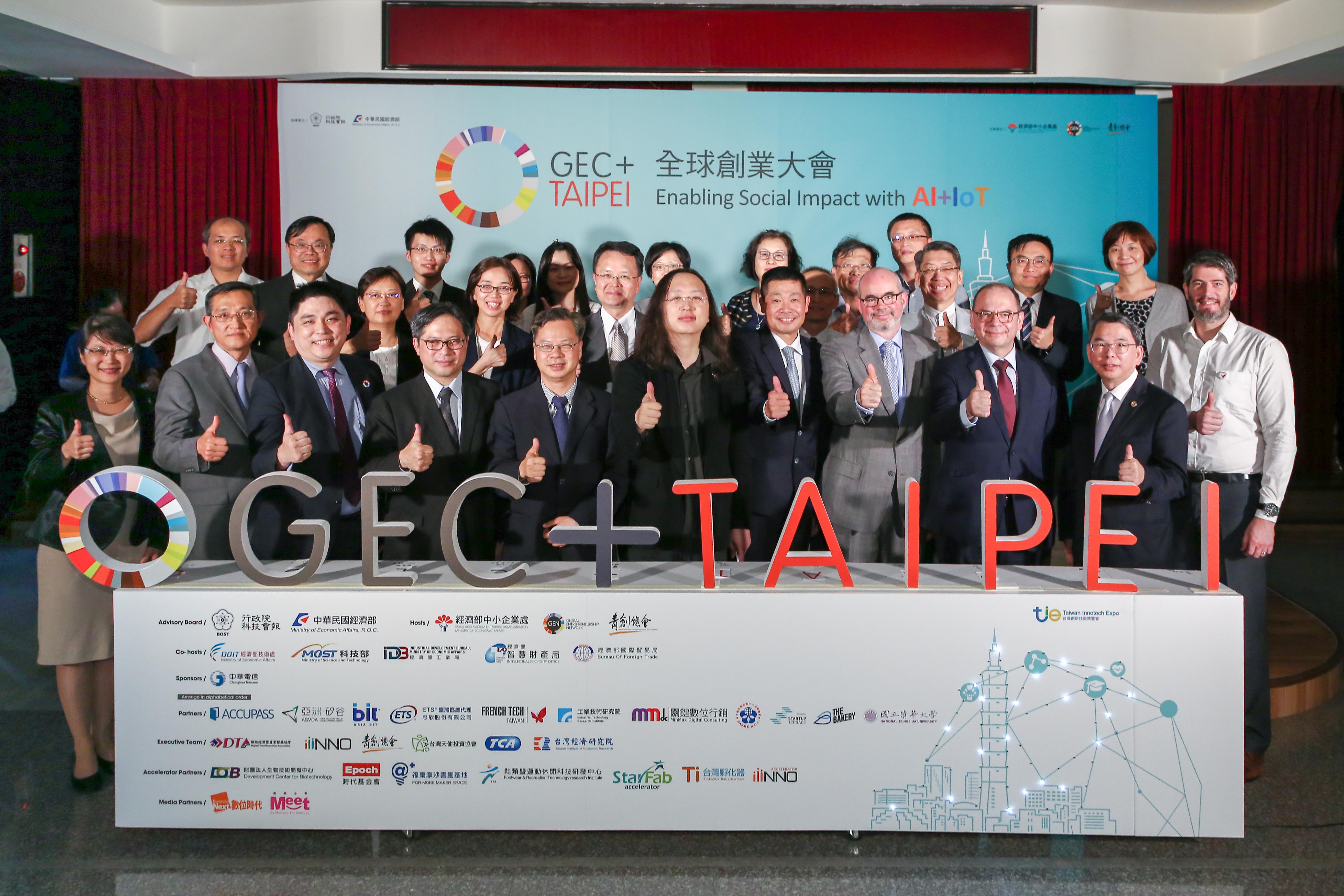 2018 GEC+ Taipei大會從9月27至28日在台北國際會議中心展開一系列以「Enabling Social Impact with AI+ IoT 智慧物聯 創新社會」為主題的全球創業活動,包括開幕典禮、主題演講、論壇、新創Pitch和晚宴等,針對未來創業聚落、智慧城鄉、智慧企業、創業教育、跨領域創新、數位健康照護與智慧醫療解決方案、物聯網智造、區塊鏈創新應用等八大關鍵議題進行國際交流探討,經濟部中小企業處處長吳明機強調,活動預計將邀請各國會員代表、專家學者與企業領袖等近400人參與,分享各國在地的實務經驗及最新趨勢及科技帶給社會創新影響的最佳案例。