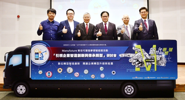迎接工業4.0帶來的巨變時代,為協助中小型製造業朝向高值化發展,中小企業處於11月9日於台北科技大學舉辦「引領企業智造創新與傳承轉型」研討會,會中邀請台北科技大學王錫福校長、GE Crotonville學院廖宜椿首席顧問、米莎資國際有限公司蕭弘書總經理、鈑研精工有限公司夏子翔品牌總監等產學代表共襄盛舉,中小企業處吳明機處長也親自蒞臨會場致詞,期許與會企業領袖都能掌握智慧製造、數位轉型及永續傳承的新趨勢、新技術以及新工具,並引領企業思維翻轉,找到創新轉折點,航向新藍海,讓台灣產業再次動起來。