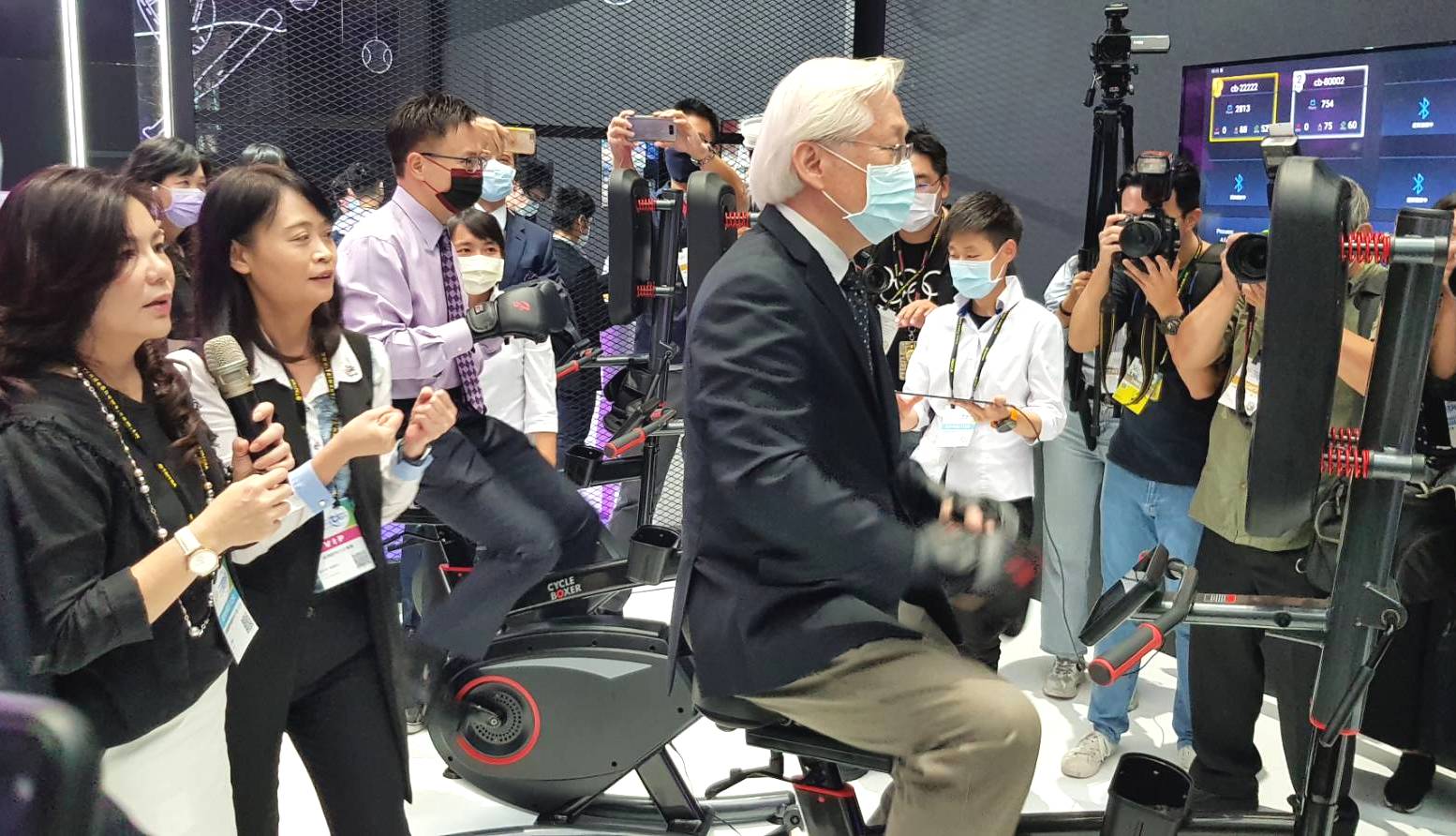 匯聚台灣科技創新實力的「台灣創新技術博覽會」,今年度以「靭性台灣 智慧未來」為主軸,於24日正式登場,行政院院長蘇貞昌親臨開幕典禮致詞,為展會揭開序幕。科技部部長吳政忠、外貿協會董事長黃志芳等貴賓,在經濟部中小企業處副處長蘇文玲的介紹下,體驗由明躍國際開發之CYCLE BOXER拳擊腳踏車,讚賞該產品結合視覺、聽覺帶來沉浸式運動體驗,又有連線競賽的趣味性,相當具有市場商機。
