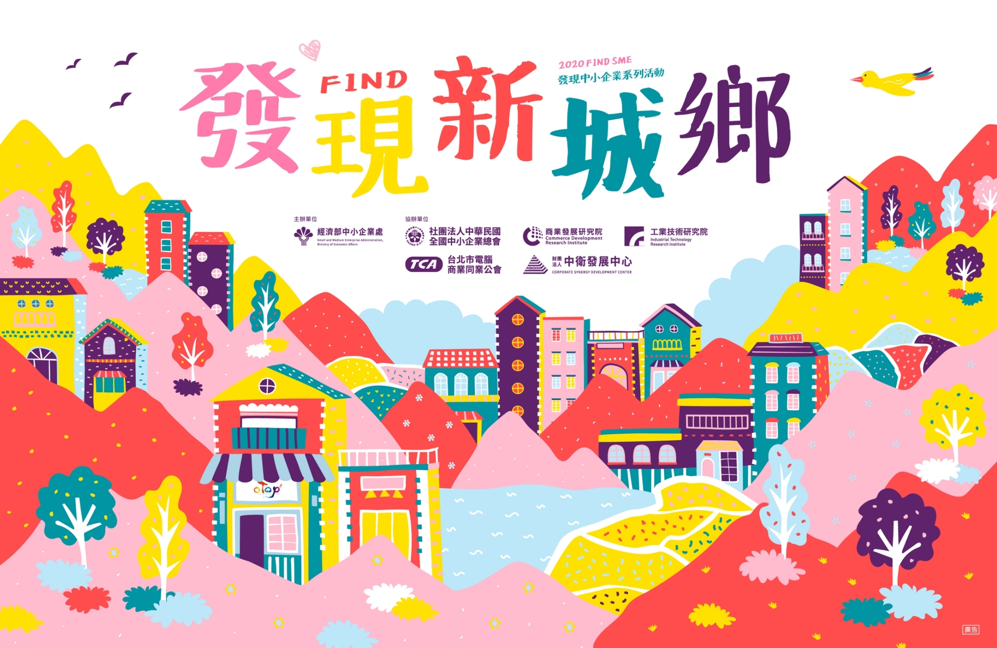 「2020發現‧中小企業(2020 FIND SME)」系列活動不僅涵蓋城鄉、地方、商圈,更跨足海外市場,讓多元的輔導成果以不同的風貌呈現,並從中發現臺灣微中小企業的堅韌、彈性與活力,相關系列活動詳細資訊請上「發現‧新城鄉」網站(https://2020findsme.com)或經濟部中小企業處網站(https://www.moeasmea.gov.tw)搜尋了解。