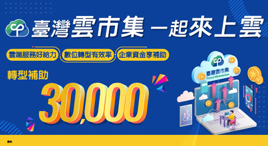 為協助中小微型企業導入數位工具,經濟部中小企業處將於7月1日推出「臺灣雲市集」平台(https://www.tcloud.gov.tw),嚴選中小微型企業適用的雲端數位工具,並透過補助每家企業最高3萬點數位點數(等於新臺幣3萬元)供企業選購,幫助企業在疫情下邁向數位轉型,提升數位競爭力!