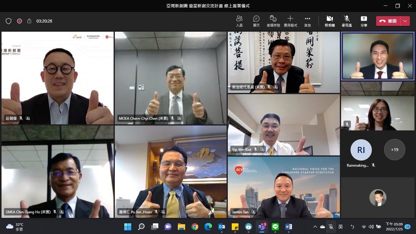 為協助新創拓展國際市場及募資,由經濟部成立之「亞灣新創園」於今(111)年7月25日與新加坡Action Community for Entrepreneurship(ACE)、Rainmaking Innovation Taiwan共同完成MoU線上簽署儀式,宣布正式啟動臺星新創雙向交流合作。