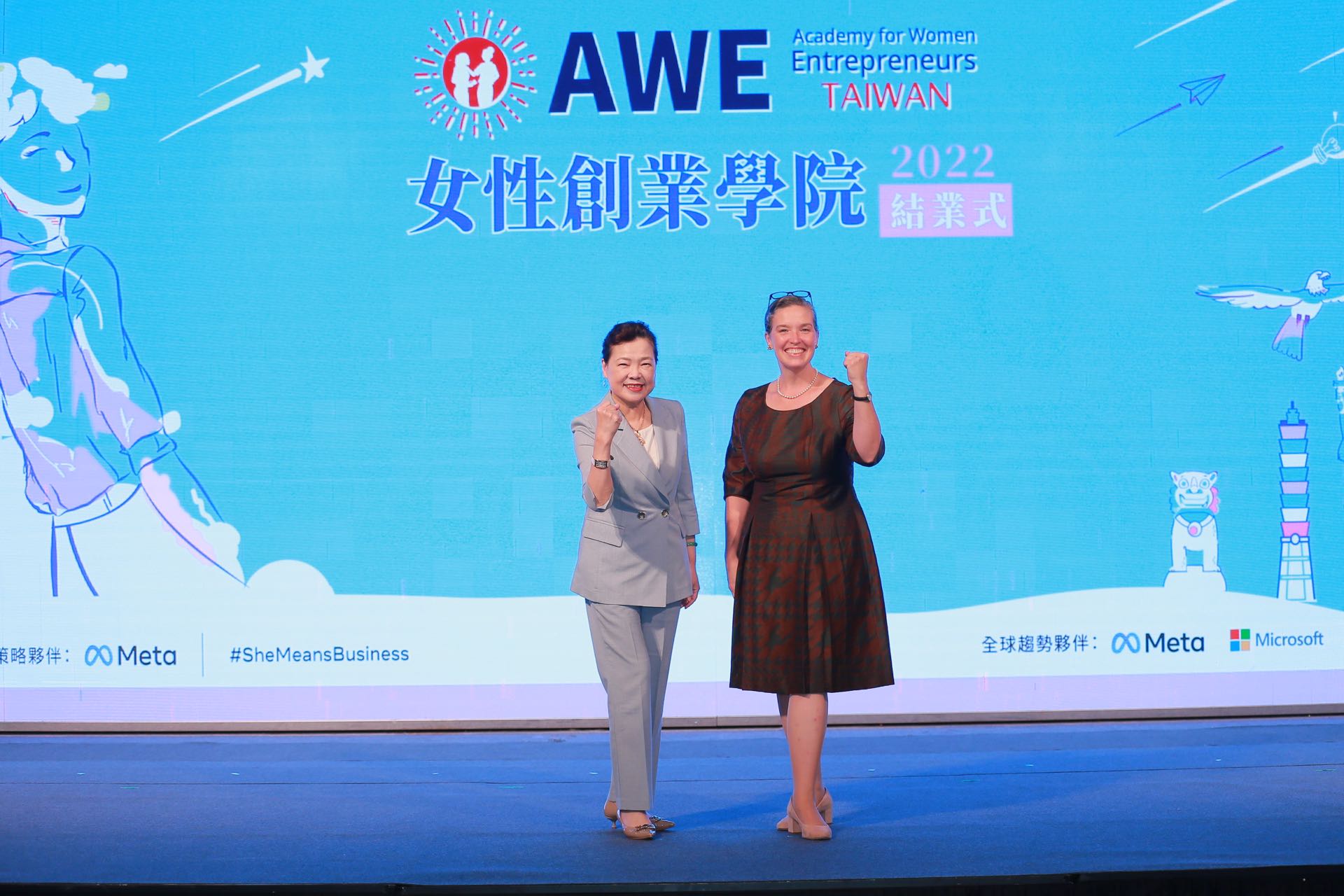 王美花部長表示,這是第二次參加AWE的結業典禮,感謝AIT選擇臺灣作為重要的夥伴來推動AWE計畫;由於臺灣女性充滿開放的思想及勇於學習的特質,也看到很多學員都運用AI技術作更多的創新,使得臺灣執行成果非常亮眼。王美花部長同時鼓勵女性創業者攜手合作,強化英文能力,邁向國際,讓全球看見臺灣女性創業家強大的實力。