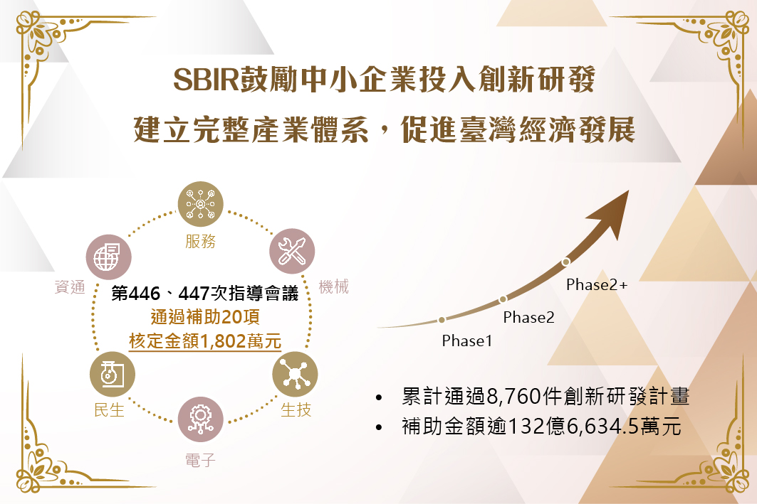 經濟部中小企業處指出,第446、447次指導會議審議通過之計畫,同時帶動受補助廠商投入研發經費逾2,616萬元,預期將可誘發中小企業投入更多研發人力,促進研發人才的培育及研發能力的累積。SBIR計畫之推動係為鼓勵並協助國內中小企業積極投入創新研發,使中小企業得以永續經營、成長茁壯,更透過研發成果建立完整產業體系,促進臺灣未來經濟發展。